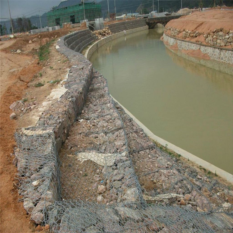 生態(tài)石籠護坡為一種生態(tài)格網(wǎng)結構形式。采用耐腐蝕、高強度、有延展性的低碳鋼絲或包覆PVC以上的鋼絲,用機械編織制成石籠,用這種網(wǎng)具制成的箱形結構,即生態(tài)石籠護坡。依據(jù)ASTM和EN標準,低碳鋼的直徑要根據(jù)工程設計的要求而變化。通常在2.0~4.0mm范圍內(nèi),鋼絲的拉伸強度不低于38kg/m2,金屬涂層重量一般在245g/m2以上,其邊線直徑一般要大于網(wǎng)箱的網(wǎng)板直徑。這種結構可用于邊坡支護,基坑支護,山巖掛網(wǎng)噴漿,邊坡植草(綠化),鐵路高速公路隔離護網(wǎng)等,還可制成箱籠、網(wǎng)墊,用于江河、堤壩、海塘的防沖蝕保護,以及用于水庫、河流截流的網(wǎng)箱。溝渠河床、溝渠的建設,涉及邊坡和河床的穩(wěn)定,都選擇了生態(tài)格網(wǎng)結構,是百年來許多天然河流改造和人工渠道開挖的主要方法。對河岸、河床都能起到有效的永久保護作用,還具有控制水流、防止水流失的作用,尤其在環(huán)境保護、保持水質(zhì)等方面有極好的效果。在護坡生態(tài)格網(wǎng)結構應用與河流護岸及坡腳保護方面都是很成功的范例,它充分發(fā)揮了生態(tài)格網(wǎng)的優(yōu)勢,達到了其它方法無法達到的理想效果。生態(tài)石籠護坡工程是將格網(wǎng)拼裝成箱籠,再加塊石等填料制成護岸新工藝,按結構形式可分為擋墻、護坡、護底、護腳、水下拋石等。由金屬絲組成的格網(wǎng)防護體,具有一定的抗拉強度,不易被拉斷,填料之間充滿了空隙,具有一定的變形適應性。由于基礎條件改變,如發(fā)生不均勻沉降、地震等,箱籠不能將箱內(nèi)填料沖出箱籠外,而能自行調(diào)節(jié),形成新的平衡;又由于箱籠系柔性結構,所以防護工程表面有可能發(fā)生小的變化,但不會出現(xiàn)開裂、網(wǎng)箱被拉斷等現(xiàn)象,造成護欄損壞。