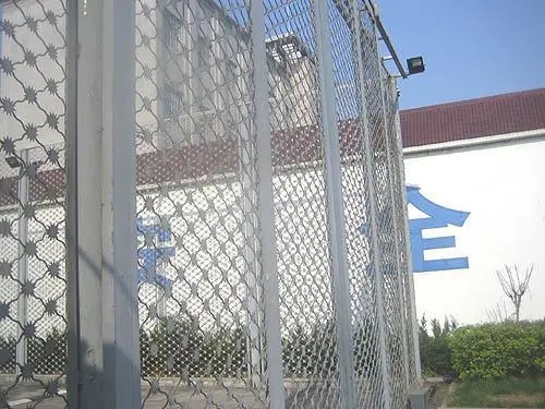 近年來(lái),被廣泛應(yīng)用在機(jī)場(chǎng)、軍事基地等高安全場(chǎng)所。注:如果在機(jī)場(chǎng)護(hù)欄網(wǎng)頂部加裝刀片刺絲、刀片刺繩后又很好的增強(qiáng)了安全防護(hù)性能。采用電鍍、熱鍍、噴塑、浸塑等防腐形式,具有很好的抗老化、抗曬、耐候等特點(diǎn)。其產(chǎn)品造型美觀、花色多樣,既起到圍欄作用,又起到美化作用。
