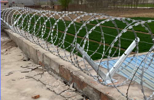 刺絲滾籠采用刀片刺繩繞圈后相臨兩圈每隔120°用刺絲連接卡固定,張開后形成蛇腹網(wǎng)狀,閉合后刀片刺繩圈徑為50cm,張開后每交叉圈安裝間距20cm,直徑不小于45cm。因而能達(dá)到好的防護(hù)隔離效果。一般來講熱鍍的優(yōu)于電鍍的。