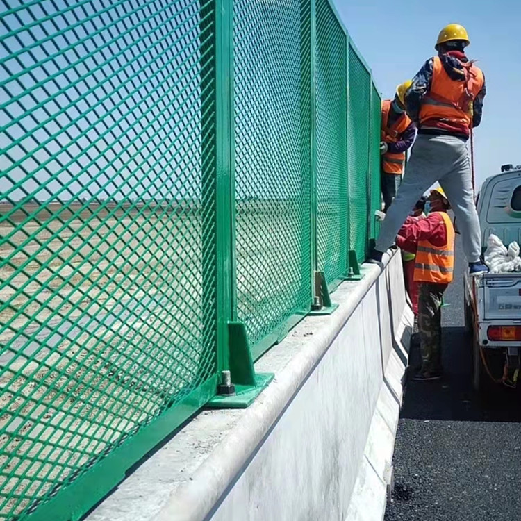 網(wǎng)孔規(guī)格:50×50mm,40×80mm ,50×100mm 75×150mm等 網(wǎng)片尺寸:標(biāo)準規(guī)格1800×2500mm。非標(biāo)準高度限于2500mm,長度限于3000mm 也可定做。 表面處理 通常橋梁護欄網(wǎng)采用的防腐形式有電鍍、熱鍍、噴塑、浸塑。 橋梁上安裝的防拋網(wǎng)首先應(yīng)根據(jù)公路等級,綜合考慮其安全性、協(xié)調(diào)性、需防護對象的特性及現(xiàn)場幾何條件等因素確定防撞等級,然后再根據(jù)本身結(jié)構(gòu)、經(jīng)濟性以及施工和養(yǎng)護維修等因素進行構(gòu)造形式的選擇。目前,橋梁方墩柱常采用翻模法施工,由于墩柱一般較高均在50米以上,加之場地狹窄上下層作業(yè)交叉作業(yè),存在較大的安全隱患。為預(yù)防墩柱施工時施工人員存在的墜落事故,以及預(yù)防工器具墜落威脅地面作業(yè)人員安全,在已澆筑完成的方墩柱上即模板底部設(shè)置防墜網(wǎng)設(shè)施非常必要,但目前的防落物網(wǎng)穩(wěn)固性和安全性都有待提高,且拆裝不方便。