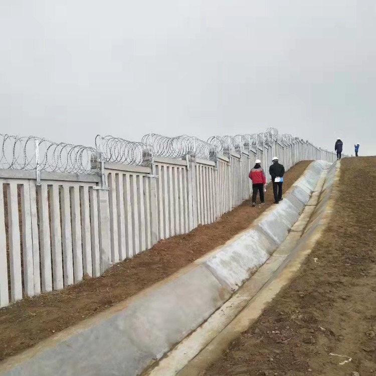 鐵路上面用的刺絲滾籠是直徑500毫米的,拉開(kāi)間距為20公分,0.5m絲資龍支架和加密支架采用30*50*2.0短形鋼管制作,表面進(jìn)行熱鍍鋅處理,鍍鋅量270g/??v向拉筋兩道,后安裝刀刺滾籠,通過(guò)卡扣連接在縱向拉筋上,從而形成高鐵防護(hù)柵欄加高刺絲滾籠成品。
